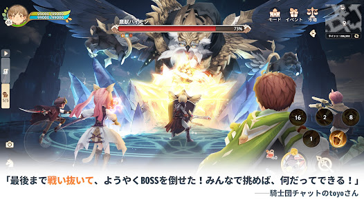 リアルタイムで他のプレイヤーと協力して挑むレイドボス戦やギルドバトル、PvPなど、オンライン要素も充実。